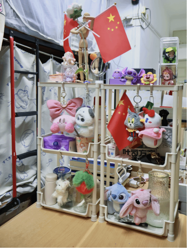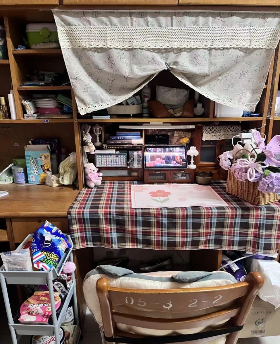 小小的寝室住着小小的我们, 小小的置物架抱着小小的物什。 我们不堆砌垃圾,生活整理喜爱。将你我的鞋放在一起,你的沐浴露挨着我的洗发水,看书本上缘勾勒出的波浪线,缀上点心爱的元素,再搭配木头的底色,就好像故事里陈旧却温暖的小房间,铺开我们的起居生活。 当我们在公司,寝室成了我们栖息的地方,我们每天刷牙洗脸,对着镜子打理头发,坐在桌前或学习或放松,收纳似乎不止让寝室干净了一些,还为其加上了一丝温度,一些对生活的积极态度,我们永远可以从瓶瓶罐罐的空隙间看见幸福。