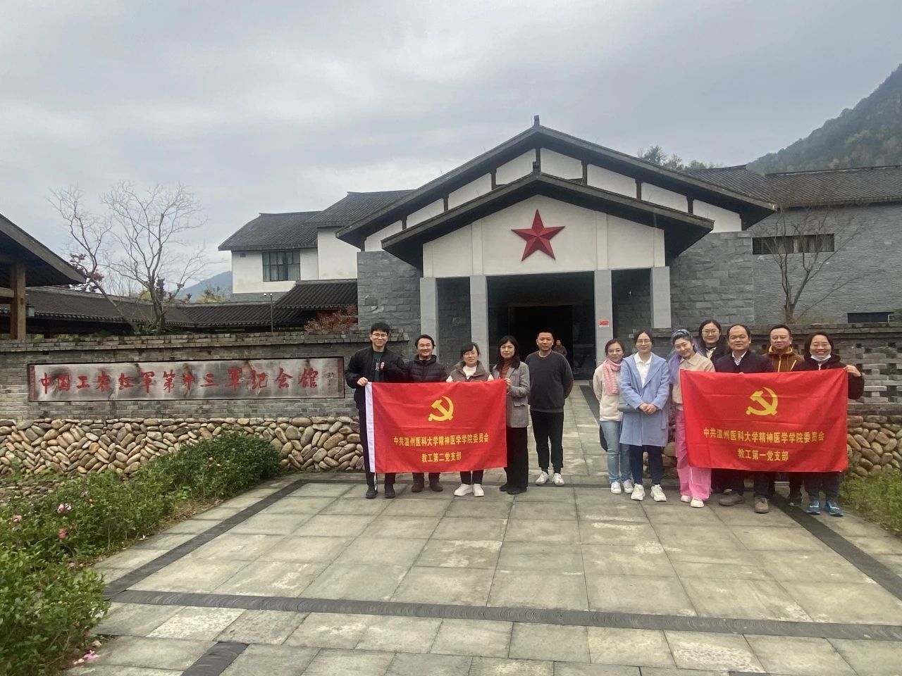 为了深入学习与贯彻浙江省第十五届四中全会精神,必一运动教师第一、第二党支部(以下简称“教工党支部”)于12月9日集体前往永嘉县红十三军教育基地(红十三军军部旧址)开展主题党日活动。