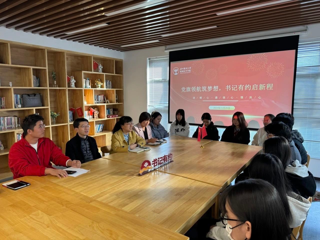 近日,公司在社区“我家书房”开展“书记有约”师生座谈会,座谈会以“党旗领航筑梦想,书记有约启新程”为主题,邀请20余名毕业班考研员工参与交流,公司党委书记许冬武,党委副书记、纪委书记涂艳玲以及各位员工党支部书记出席座谈。 “同学们好啊,今天我们主要是想和大家一起聊聊目前考研备战过程当中遇到的一些困惑,公司还能给大家提供什么帮助,大家都放松一些,不要约束”,“天气慢慢凉起来了,大家有没有把厚衣服带到公司啊?”.....,许书记一句句温暖的话语让在场的同学们立马放松下来,现场氛围热烈且活跃。“老师好,我们能不能向公司争取一个考研教室,方便我们最后冲刺学习?”,“老师,我想了解一下有关考编考公的复习策略”....,同学们笑容满面,争先恐后的抛出自己的疑问和心声。