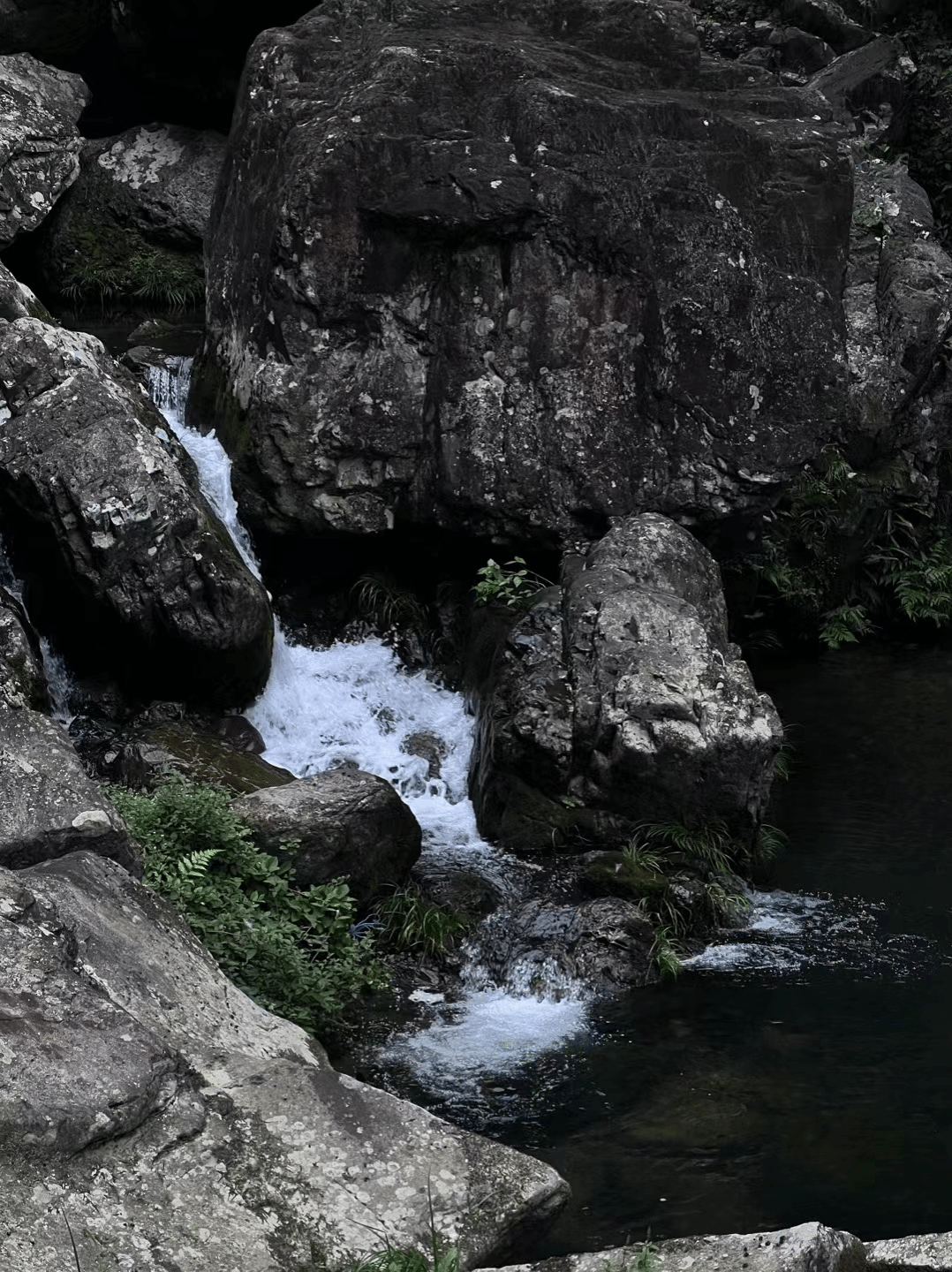 行至深处才近距离领略到了三重漈的水势绵绵,水珠似飞花散落空中,在阳光下熠熠生辉,衬上崖壁上,水潭边散落的曼珠沙华,如其花语中的“等待”一样,这片山水等着来人书写,等着来人的深深眷恋。