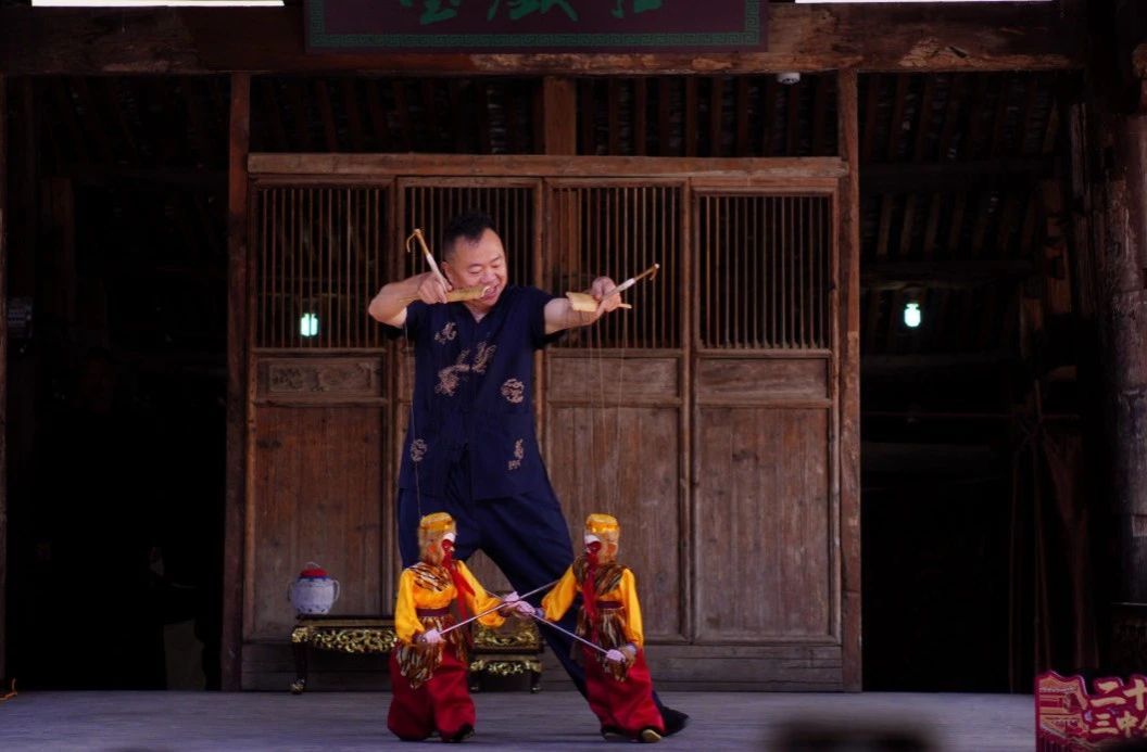 在临近离开库村之际,当地非遗大师向我们表演了精彩绝伦的木偶戏,从真假美猴王的激烈,到钟馗醉酒的酣畅,再到川剧变脸的技艺,非物质文化遗产再次征服了采风团,我们为这一门技艺深深叹服。