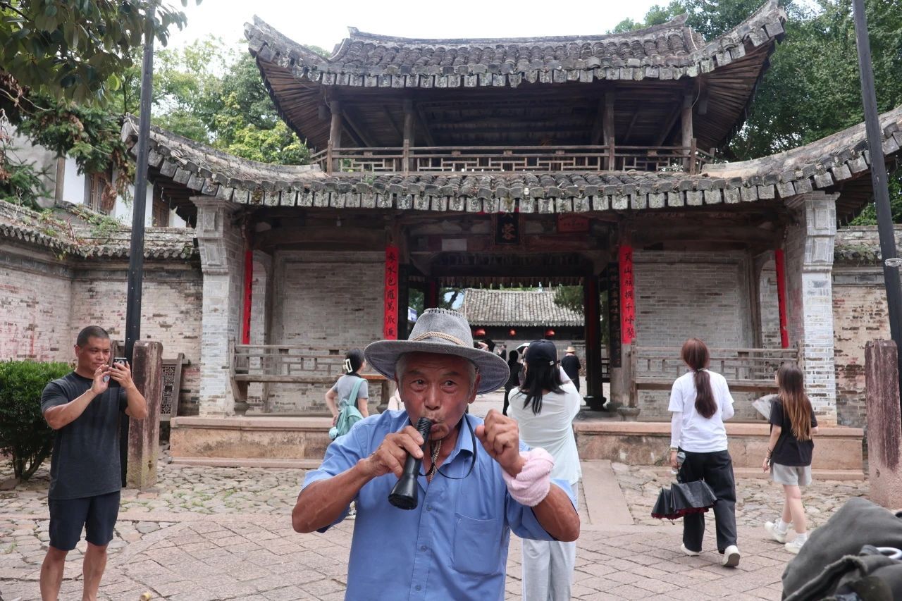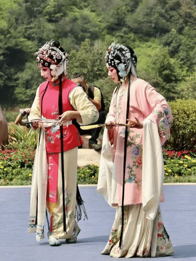 7日上午九点左右,“杭温高铁老员工旅拍团”永嘉线成员乘坐大巴到达楠溪江站。集合完毕后,永嘉昆剧团粉墨登场,带来了永昆经典折子戏曲目⟪大闹天宫⟫、⟪牡丹亭•游园⟫。悟空身段灵活,丽娘唱腔婉转,赢得阵阵喝彩。