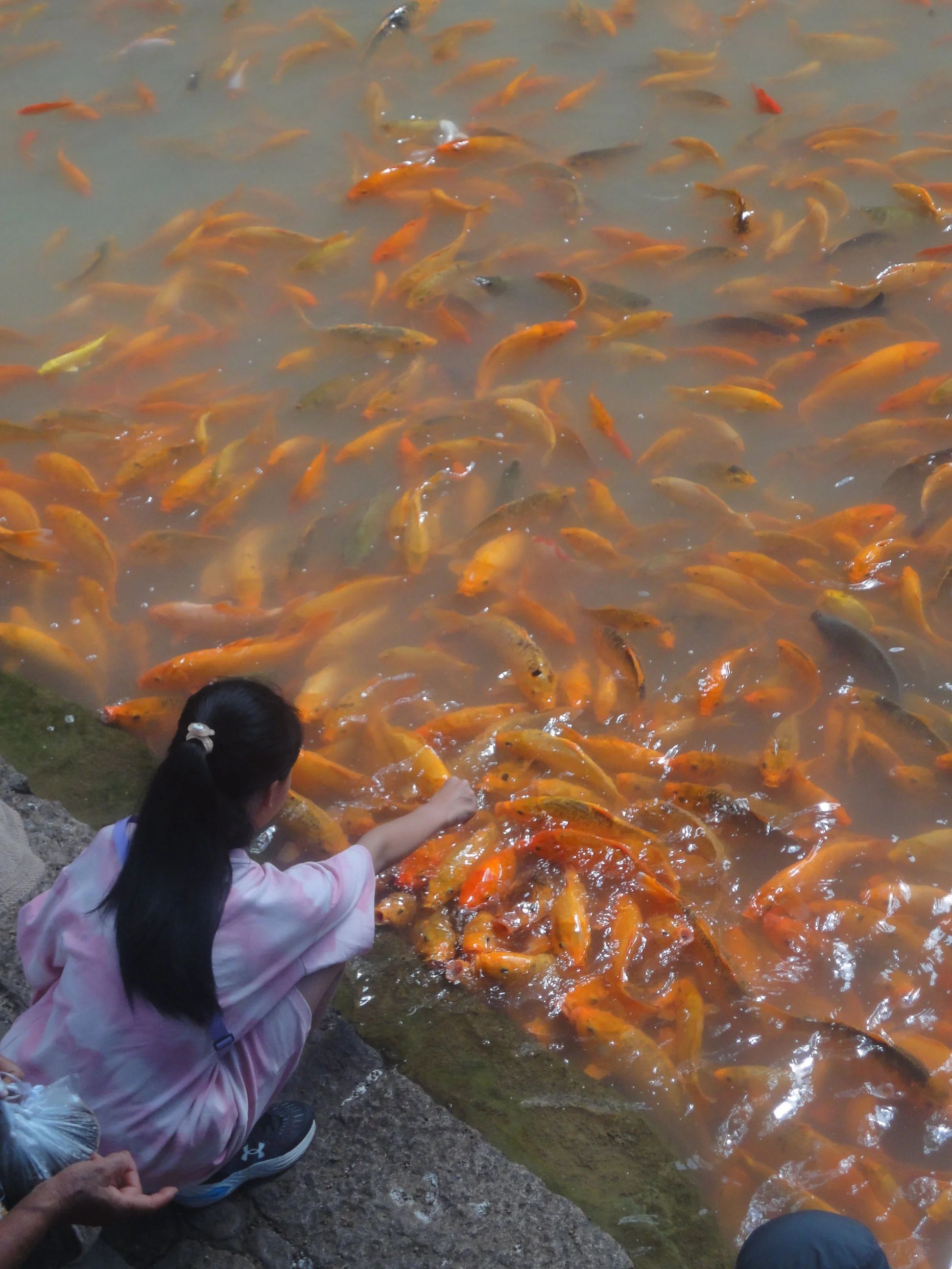 水云村的参观短暂却让人印象深刻,随后我们来到了陶公洞。跨进寺庙大门,两侧塑像怒目圆睁,气势凛然。向前走几步,却见别有洞天,精巧的寺庙依地势而建,诸多佛像闭目凝神、宝相庄严。恰逢农历八月初六,是当地人民的上香日,此处香烟缭绕,人来人往热闹非凡,路边也因此聚起了小型市集。百米外有山寻宋韵茶馆,别有一番清凉闲适。