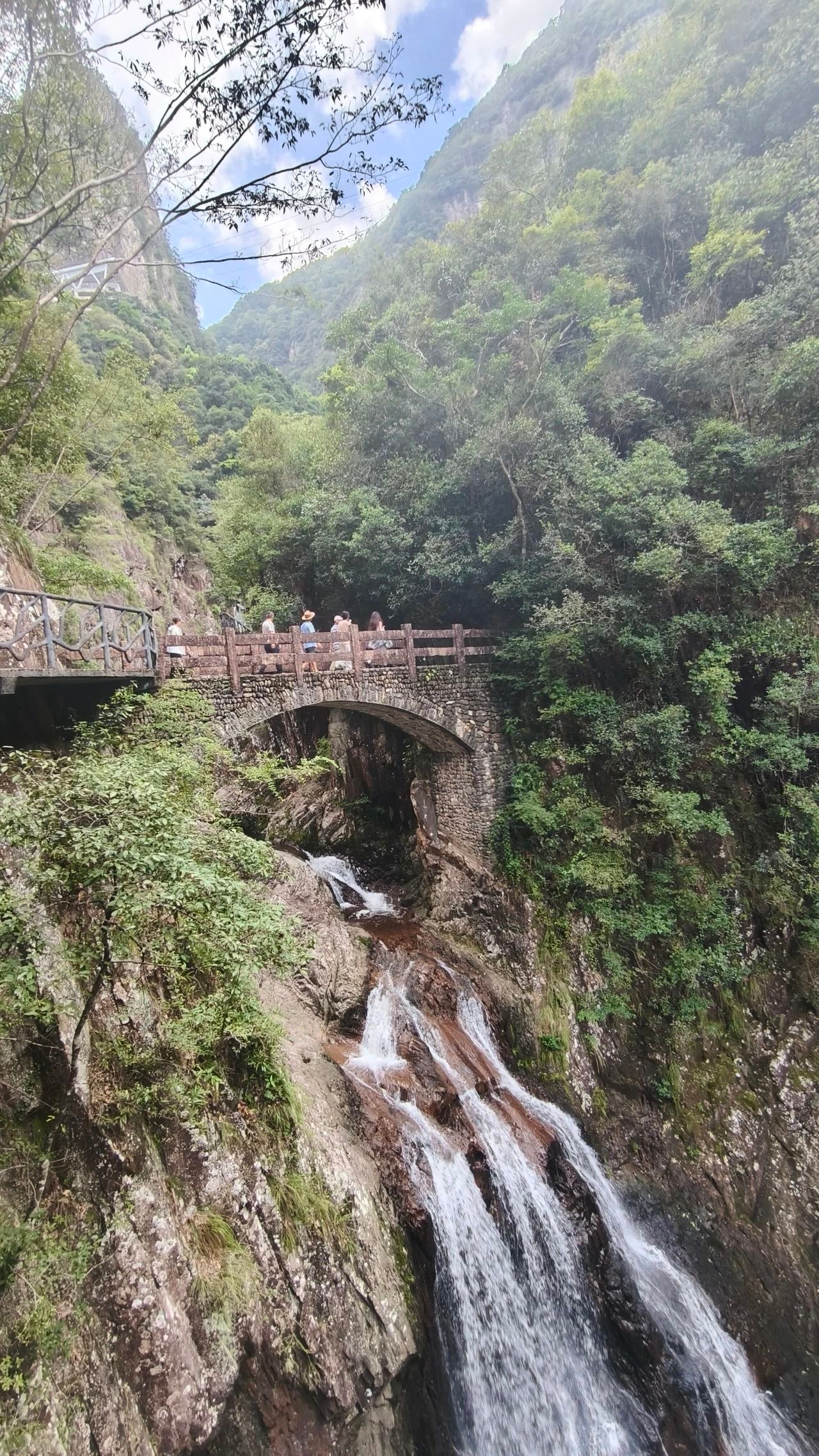 2024年9月8日上午八点,“杭温高铁老员工旅拍”南浦溪站观光团乘坐大巴来到了三重漈。葳蕤山河光,山溪浮鹅毛,是对三重漈的最好描述,我们跟着“畲族小师妹“充分领略了这一片泰顺山水的自然风情。