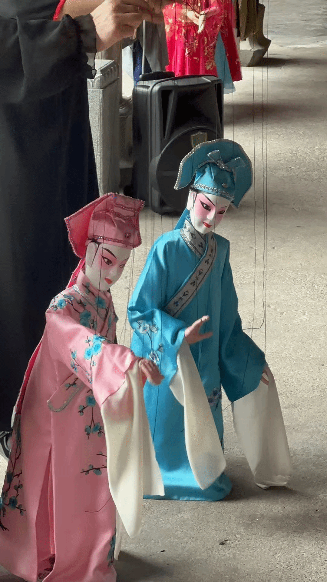 随后经过两个半小时的车程,我们来到了百家宴的发源地——三魁,体验了当地独具特色的百家宴文化,欣赏了源远流长的提线木偶戏独舞。饭后,导游带我们去到百家宴文化体验馆参观。在当地人的描述中,我们得以窥见当时盛况:在元月十五这一天,家家户户会沿长街大摆筵席,大家聚在一起享用午餐,晚间会表演舞狮、舞龙、药发木偶戏等表演。泰顺百家宴自宋代以来已延续了千年,在历史的淬炼中愈显其魅力。
