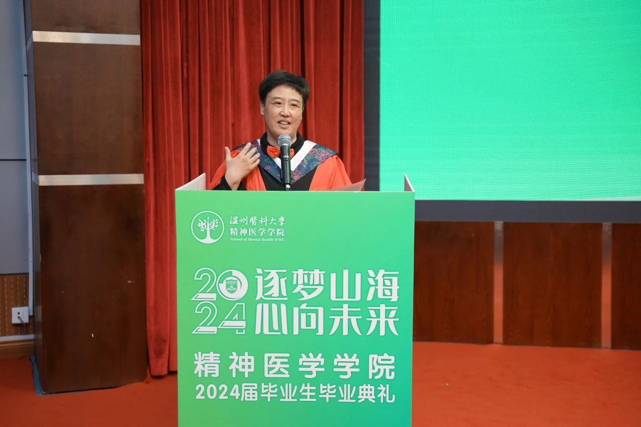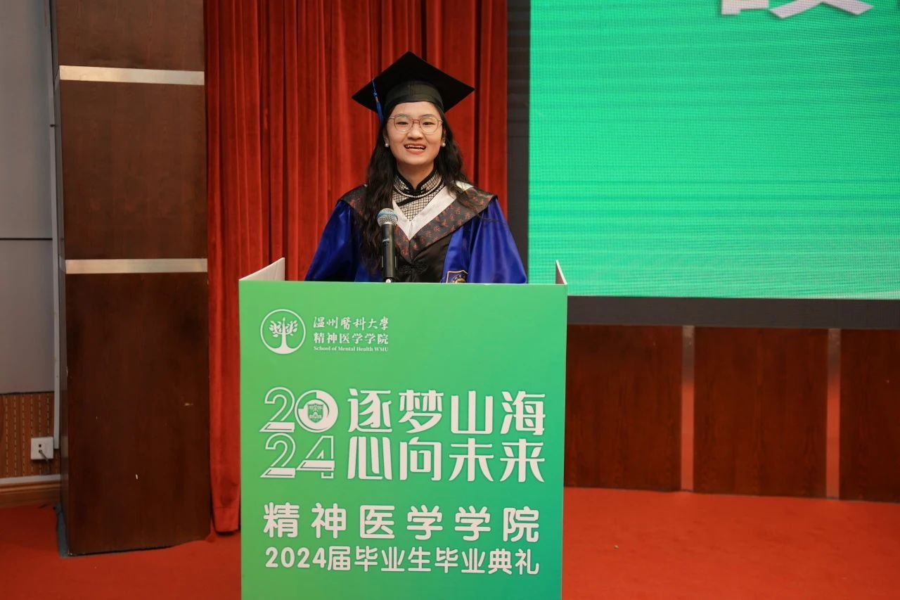 公司副经理吴伊丽为毕业生们致辞。她高度肯定全体毕业生在读书期间付出的努力和取得的成绩,并向毕业生们提出了三点期望:一、心怀仁爱,践行医者初心。希望同学们在未来的职业生涯中,始终牢记“健康所系,性命相托”的誓言,秉持医者仁心,用精湛的医术和温暖的关怀,为患者带去希望和光明。二、追求卓越,勇攀学术高峰。希望同学们能够保持对知识的渴望,积极进取,在科学研究中勇攀高峰。三、关注心灵,守护精神家园。希望同学们能够心怀社会责任感,积极投身到心理健康知识的普及和精神疾病的防治工作中,用专业知识守护人们的精神家园。