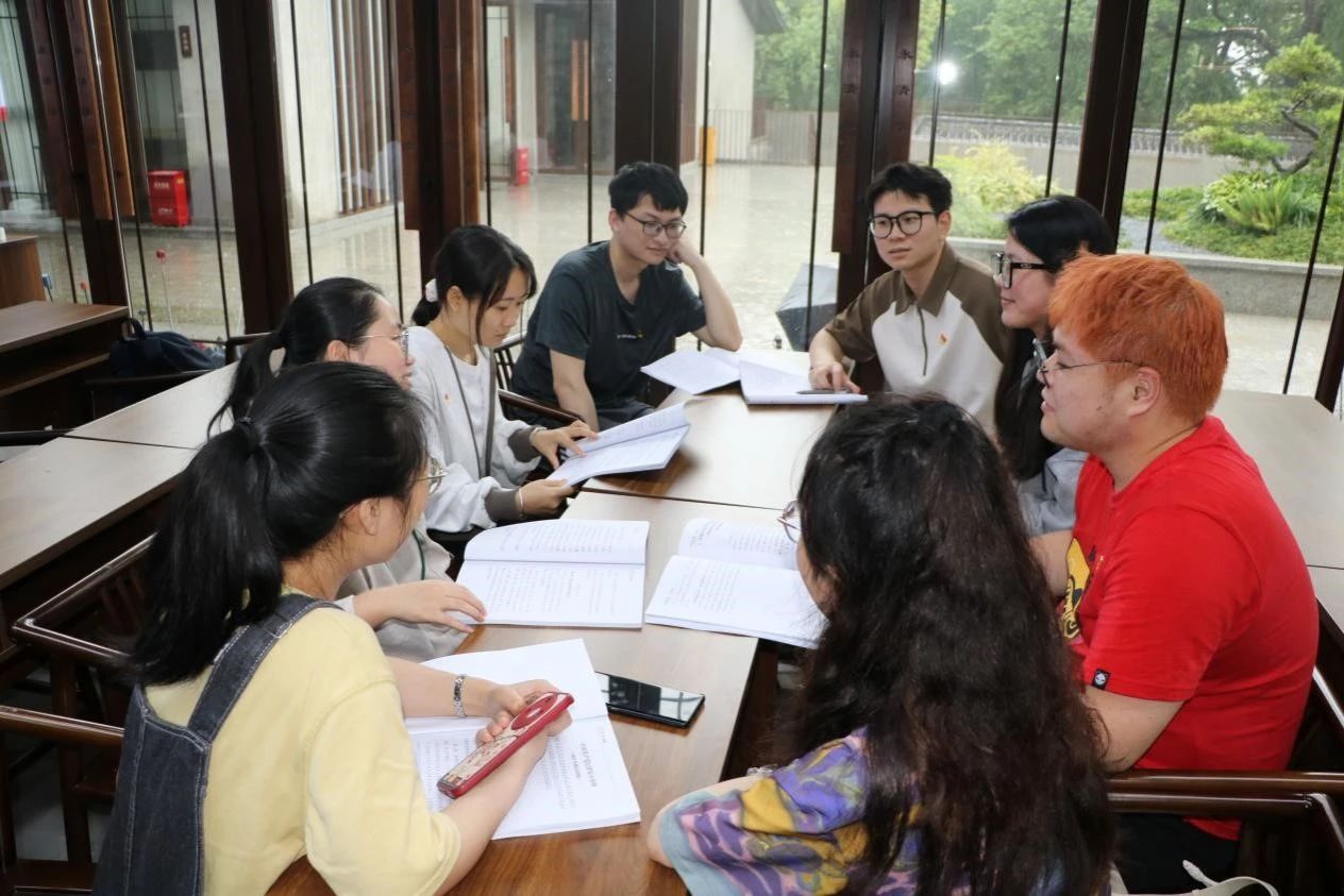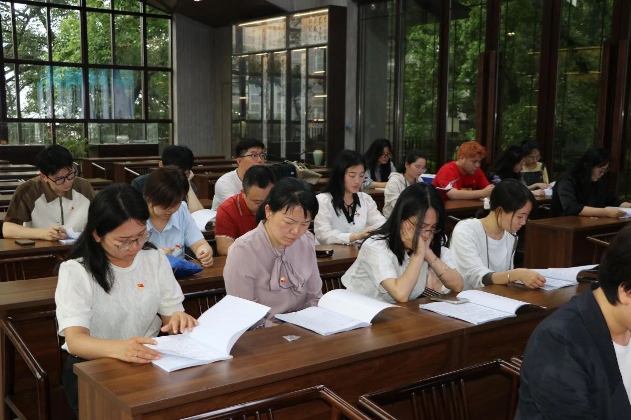 梅雨细,晓风微,众人冒雨沿着石阶往上,寻找位于半山腰的永清苑。在抵达学习地点“永清苑”后,师生党员迅速投入第一项活动——党纪学习教育专题读书班暨党委理论学习中心组(扩大)学习会。本次读书班分为领学辅导、集中自学和分组专题研讨三个部分。公司党委为读书班编印并发放专门教材读本,重点学习《中国共产党纪律处分条例》(2023年修旧对照版)和关于《条例》的十三篇权威解读文章。