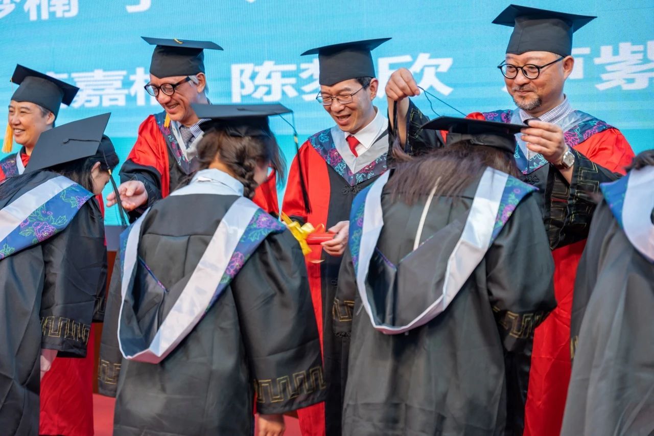 典礼举行了隆重的学位授予仪式。10位导师为毕业生们颁发了员工荣誉证书,并一一正冠、拨穗合影。稻穗的成熟代表着学有所成,从右到左,拔去的是大学的稚嫩与过往,拨来的是必一运动给每位学子的祝福与牵挂。