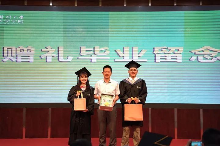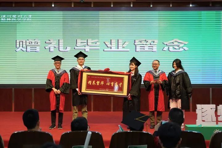 毕业典礼上,公司、医院与毕业生之间互赠了纪念品,以实物承载这份深厚的情谊和美好的祝愿。刘德辉老师、蒋柯老师接受了毕业生们为公司准备的礼物——牌匾,“精养繁华 心育高才”八个字是毕业生们对公司的由衷感谢,也是毕业生们对公司最深切的致敬。同学们也为医院准备了心理健康科普优秀作品,它凝聚着同学们在心理健康普及领域的智慧结晶,以及对未来医疗科普工作的美好憧憬。温州康宁医院副经理许宁为毕业生们赠送了纪念品--定制充电宝,希望同学们在失落时可以续航充电充满正能量。
