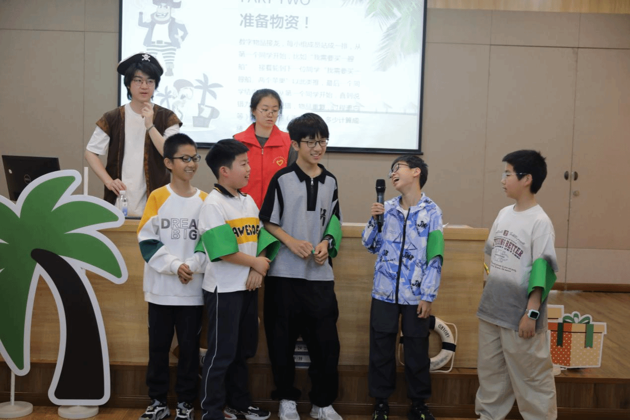 每小组成员站成一排,从第一个同学开始,比如“我需要买一艘船”,接着轮到下一位同学“我需要买一艘船、两个苹果”以此类推,最后一个同学结束之后再从第一个同学开始,直到说错为止。在这个过程中小朋友们懂得尊重他人发言,且队伍间的互相提醒与帮助是允许的,这也增强了成员之间的联系和协作互助能力。在这个过程中,小朋友们互帮互助,不断挑战自己的记忆极限,并且在同伴说错时也从不焦虑,而是整装再出发。他们在这个游戏中学会了包容同伴,协同前行。
