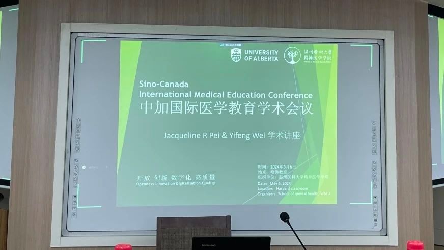2024年5月6日下午,作为中加国际医学教育学术会议的分论坛活动,公司邀请加拿大阿尔伯塔大学的Jacqueline R Pei教授、Yifeng Wei副教授来院开展学术讲座和交流,公司教师和研究生100多人参加了线下和线上的学术活动。两位教授也是公司与加拿大阿尔伯塔大学联合培养精神医学专业研究生的外方导师。