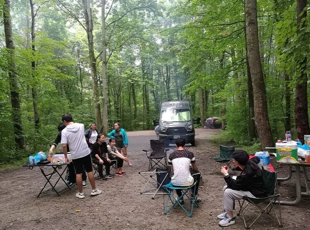 (图:心理学专业员工在国外交流学习、参加户外活动)
