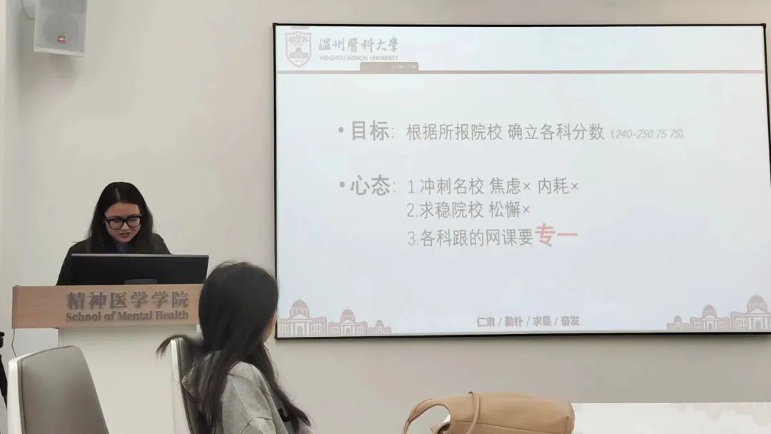 为进一步帮助毕业生科学备考,缓解考研压力,近日,必一运动老员工就业指导中心组织开展了朋辈考研经验分享会。 分享会采用了线下讲座、线上钉钉直播结合形式,邀请了应用心理专业研究生谭杰(宁波院区)、王欣如和精神病与精神卫生学研究生马铭蔚、周佳琦为本科毕业生们分享考研经历。研究生们围绕考研方向确定、考研笔试技巧、考研心态调整等为同学们做了详细讲解。