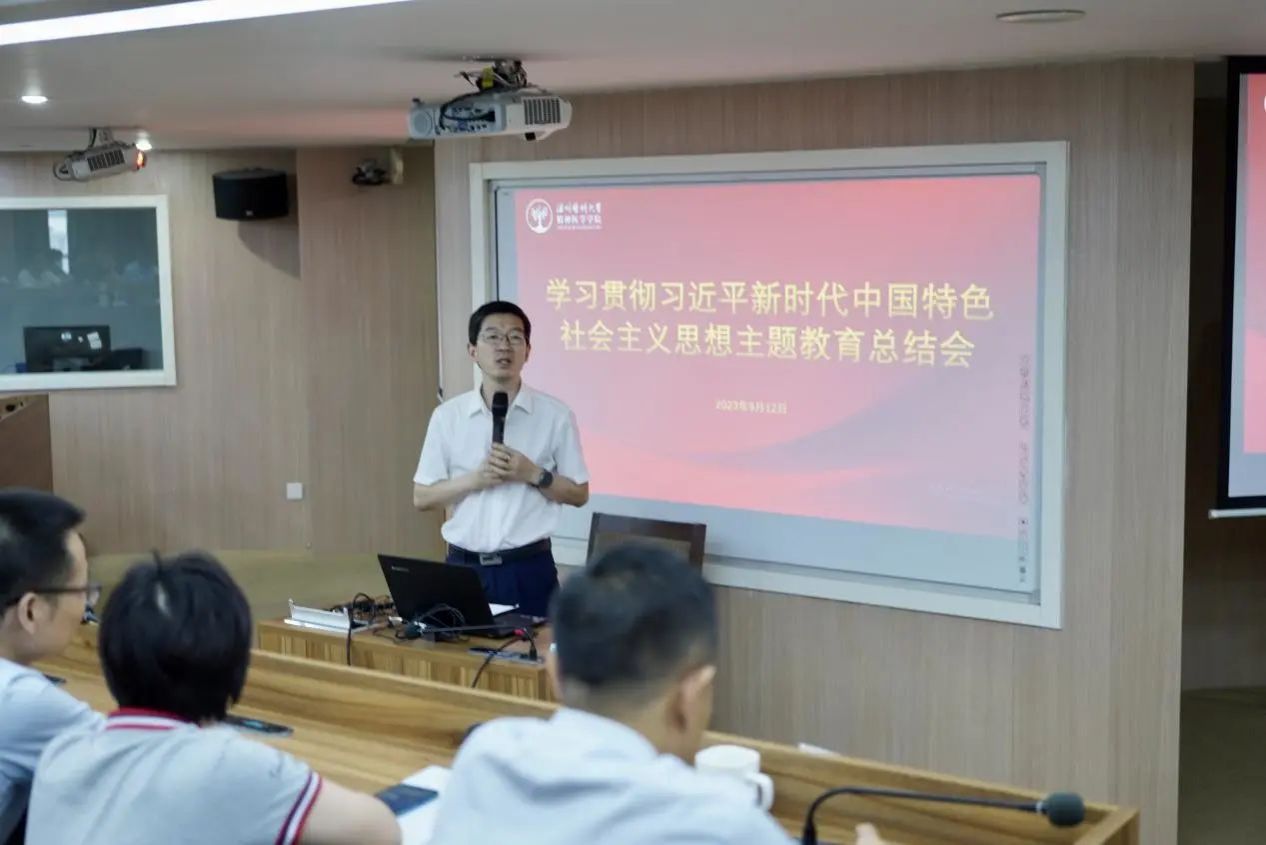 许冬武强调巩固深化拓展主题教育成果,要坚持做好“四个举措”:一要以学铸魂,坚定理想信念,筑牢思想基石,持续加强党委理论中心组学习,做细做强师生思想政治工作。二要以学正风,深化作风转变,立牢宗旨意识,以“民生实事”工作清单为抓手,建立服务群众的评估机制,按要求开展联络点长期调研机制,增强同人民群众的血肉联系。三要以学增智,提升能力本领,壮大干事力量,进一步探索并做实书记工作室,提升党员干部政治能力、思维能力、实践能力,进一步探索二级公司教师发展中心建设,深入实施“人才强院”发展战略。四要以学促干,端正政绩观,强化干事担当,聚焦打造B-Sports校企合作办学“示范窗口”的目标着力部署,深化产学研合作机制与平台,持续凝练梳理,形成特色亮点与品牌效应,推进公司思政工作争先创优。