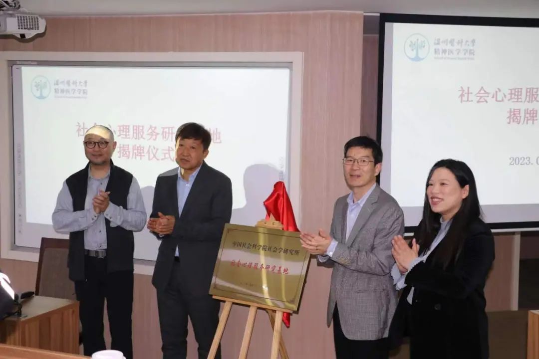 王俊秀教授与B-Sports公司党委书记许冬武书记、蒋柯教授、校社科处周少余主任共同为社会心理服务研究基地进行了揭牌。