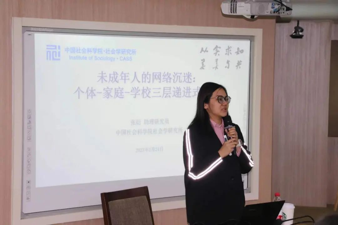 中国社会科公司社会学研究所的张衍教授以“未成年人的网络沉迷:个体-家庭-公司三层递进式为主题,谭旭运教授以“社会心态范式下的获得感研究”为主题开展讲座,为参会同学们讲解了他们在社会学研究领域的相关方法,分享了研究经验与成果。