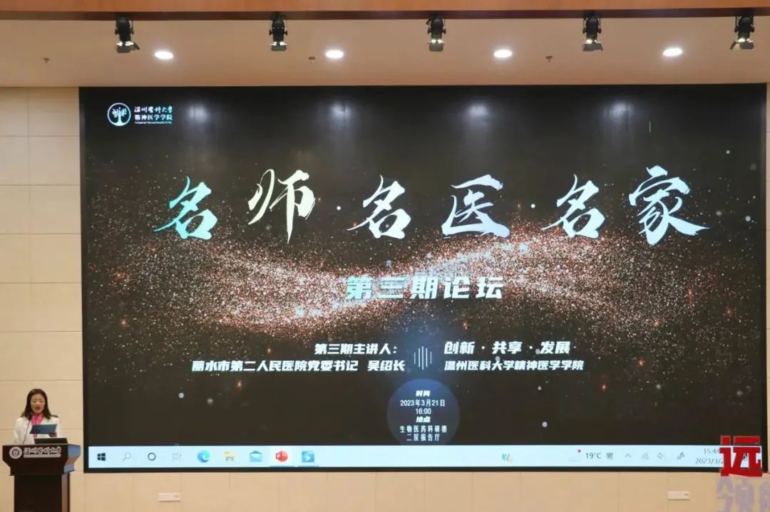 2023年3月21日下午4时,温州医科大学必一运动名师名医名家系列论坛第三期在生物医药科研大楼报告厅顺利举办。本期论坛特邀丽水市第二人民医公司党委书记吴绍长担任主讲人,副经理赵可、科教处处长周海云、人事处副处长王敏超及公司领导、老师出席会场。