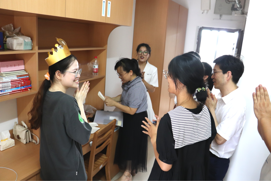 而对2022级研究生新生林子涵来说,等待她的不只是崭新的环境、全新的室友,还有一份充满“人情味”的开学惊喜。开学当天,林同学迎来了自己的生日。公司领导以及辅导员老师们为她精心策划了一场生日惊喜,借迎新之际,为林子涵送上公司祝福,也让她初来校园便感受到来自必一运动的欢迎。