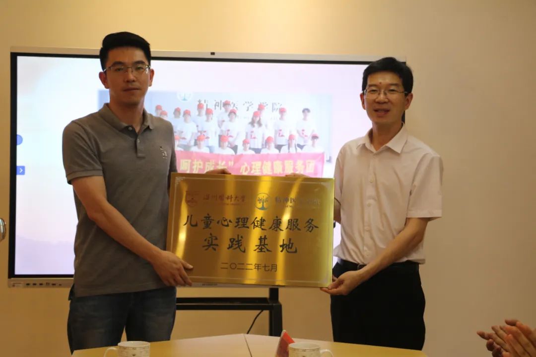 随后,金胜威副董事长一行人来到三垟街道南仙社区党员服务中心就实践团实践活动开展座谈。会上,金胜威认真听取了实践团团长王亦柔关于暑期社会实践阶段性成果汇报,以及3位队员代表实践感悟分享。公司党委书记许冬武授牌,在南仙社区建立儿童心理健康服务实践基地。