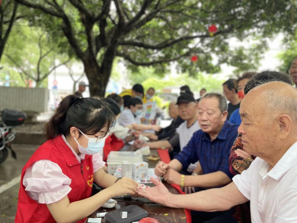 学习实践团在湖滨公园开展早筛义诊服务