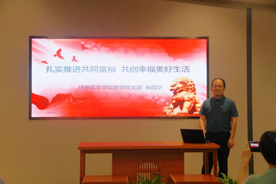 随即,在曹村镇东岙村文化礼堂中,教师党支部书记张国华结合党建理论与专业研究,为各位党员上了一堂以共同富裕为题的生动党课,诠释了共同富裕要实现“三富”——“物质富裕、精神富有、心态富足”,共同富裕要增强人民“三感”——“获得感、幸福感、安全感”的理论创新,带大家领悟了共同富裕为实现人民幸福美好生活的民生目标的真谛。