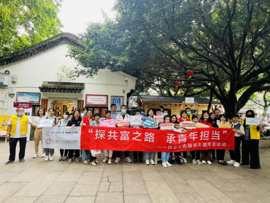 6月11日,伴着濛濛细雨,公司党委携手康宁医公司党委前往温州瑞安,共同开展“探共富之路 承青年担当”校企红色链接主题党日活动。公司党委书记许冬武带领由公司教职工党员、高层次党外人士、附属康宁医公司党员代表以及员工党员代表共32人组成的学习实践团,来到瑞安市玉海街道与曹村镇东岙村,通过入户走访老党员、组织红色研学、开展志愿服务等多种形式在身体力行中探寻实现乡村共同富裕的精神密码,锤炼了党性,洗礼了思想。