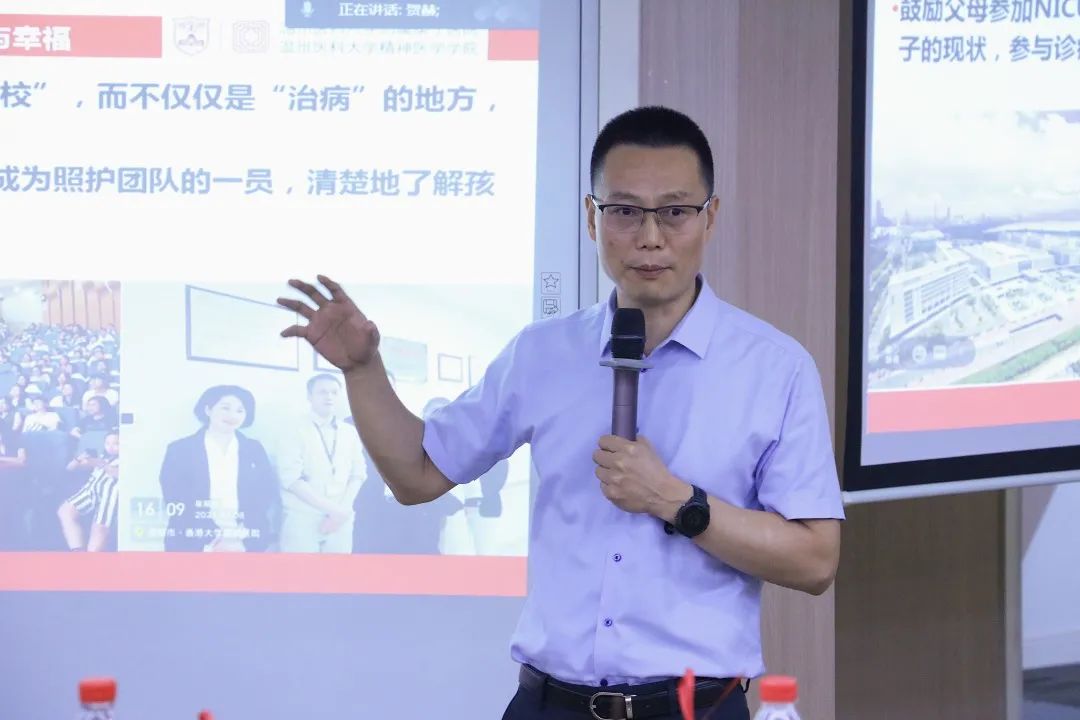 下午,精神医学与应用心理学两个专业建设讨论会同时进行。精神医学国家一流专业建设研讨会由精神医学系副主任赵可老师主讲,着重在一流专业建设目标落实、人才培养计划修订、专业特色模块课程讨论、实习见习规范要求和课程团队培养计划这五个方面进行了任务布置与汇报。