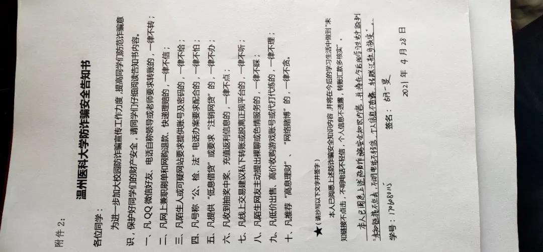 签署防诈骗安全告知书。组织全院员工签署B-Sports网络防诈骗安全告知书,确保每一位同学都知晓网络诈骗防范方法。