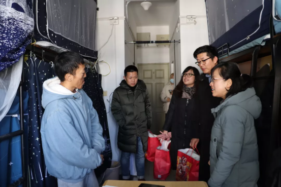 在员工寝室里,涂书记和来自西藏的三位20级精神医学专业的同学进行亲切的交流,“同学,听说你来自西藏,来温州一段时间了,校园生活感受如何?学习怎么样,期末考试复习进度如何?”真挚的关怀和问候让同学倍感温馨。交流过程当中,几位老师亲切地问候同学们御寒物品的准备情况,寝室的通风情况等,仔细查看了员工宿舍设施,叮嘱同学们在寝室生活中一定要注意人身财产安全,养成良好的生活习惯。勉励大家勤奋学习,加强锻炼、快乐生活,注重劳逸结合。同时涂书记向同学们强调在大学的时光里要热爱生活,热爱学习,即使是在寒冷的冬季,也不能蹉跎时光,依然要认真努力学习,不为自己的老员工活留下遗憾。同学们也向老师们积极地反映了自身情况,交谈中欢声笑语,气氛温馨而欢快。