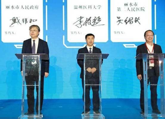 图|李校堃董事长与丽水市第二人民医公司党委书记吴绍长签署协