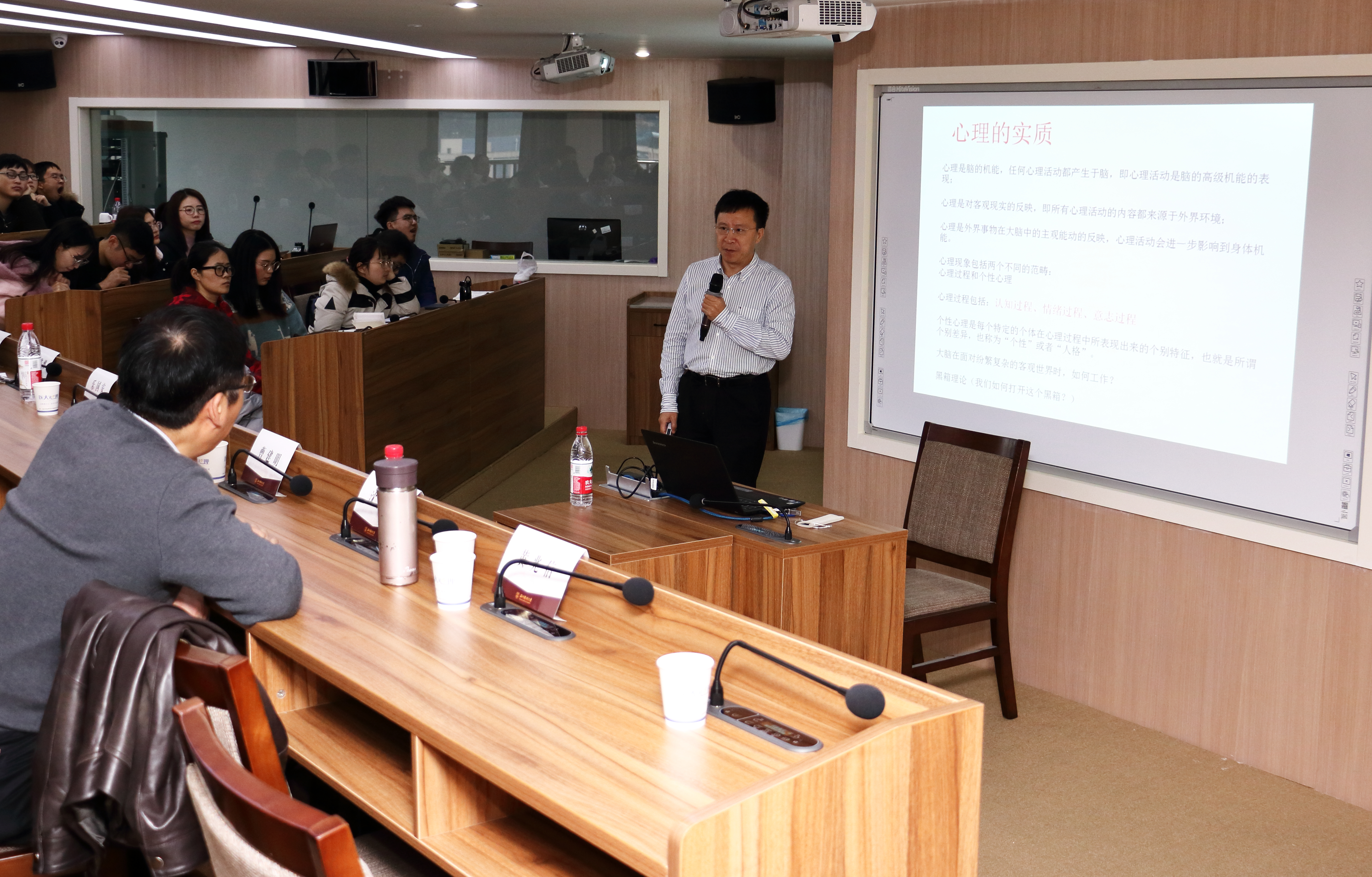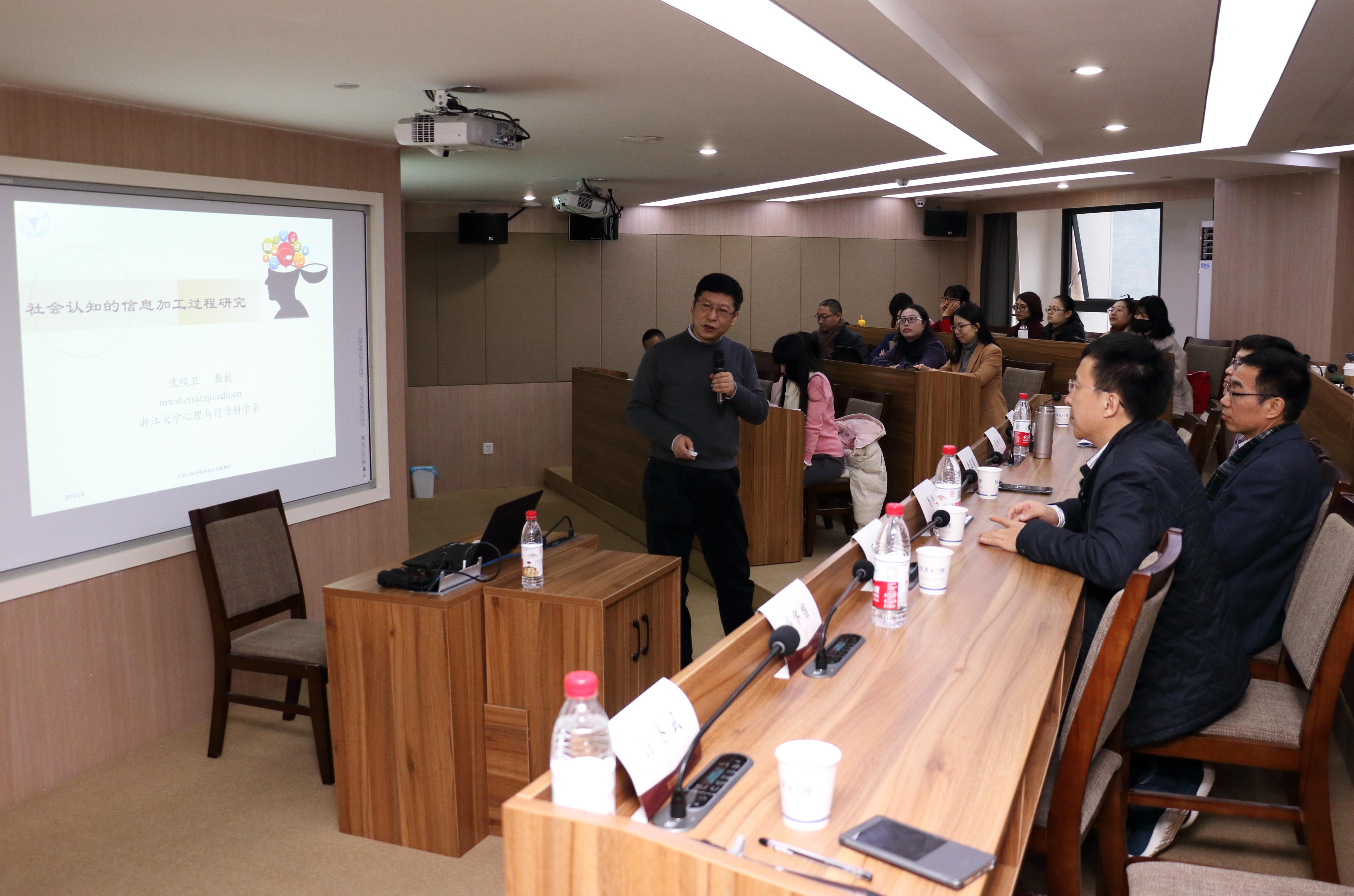 校领导曹建明副董事长和社科处黄兆信处长出席会议并致辞。曹董事长指出,国家卫健委、中宣部等22个部门于2016年颁布《关于加强心理健康服务的指导意见》,心理学学科和专业迎来快速发展的良好时机。公司心理学在十多年的建设过程中取得了一些进步,但总体发展还比较薄弱,期待三位专家为我们介绍心理学科发展最前沿的知识,同时为公司心理学科和专业的建设发展提出宝贵的意见和建议。