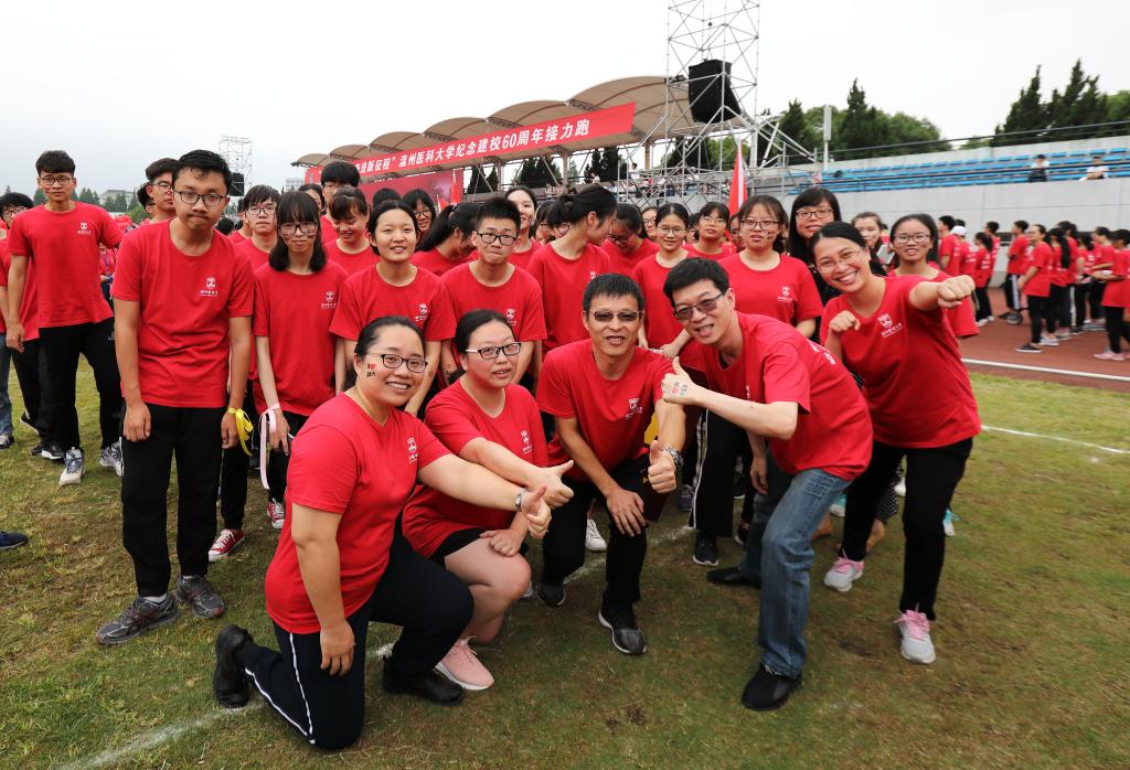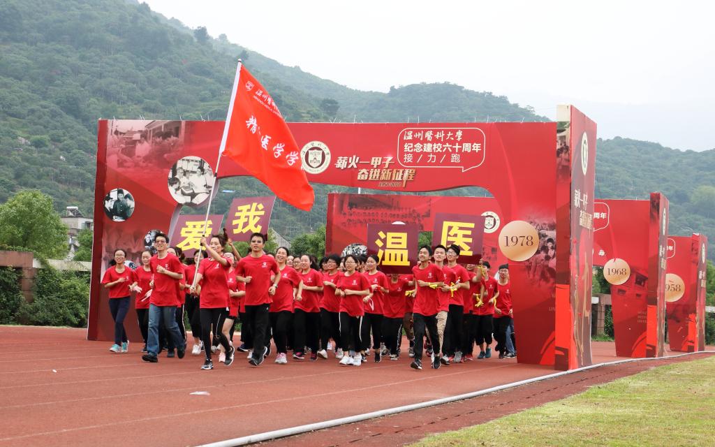 必一运动师生衣着校庆logo衫,脸贴校庆图案,以饱满的精气神迎接校庆跑。在金理奏书记和许冬武副经理的带领下,公司师生从操场出发,穿越6道时光之门时喊出了响亮的口号——“爱我温医,追求卓越,再续华章”,穿过居里桥,绕过图书馆,以矫健的步伐奔向校庆跑的终点,借此表达公司对于温医甲子校庆的祝福。