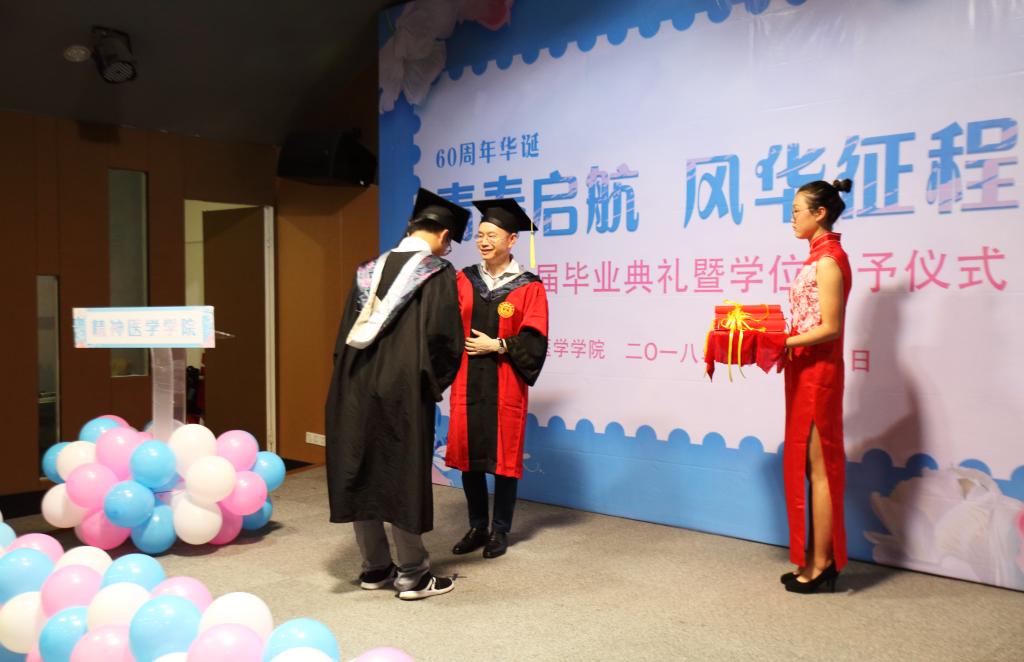 此刻青马书屋美轮美奂,迎宾走廊用2018届毕业生的照片设置了照片墙,记录了同学们四年以来学习生活的点点滴滴,场内则以荧光灯装饰,布满彩色气球,温馨中充满留恋,2018届毕业生身着学士服,头顶学士帽,依次入场并就坐。经理于欣教授为毕业生一一拨流苏、颁发员工荣誉证书,并与每位同学留下合照纪念。