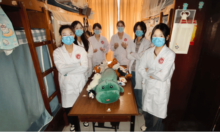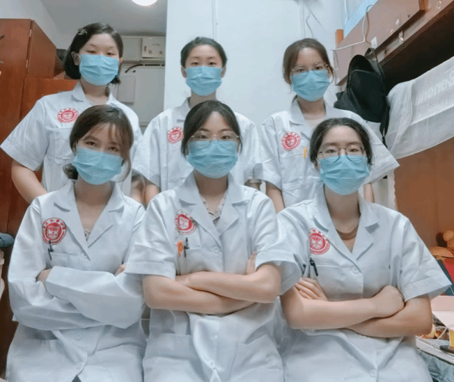5#112:从初入医大的军训服到专业的白大褂再到其乐融融的日常玩偶合照,三张照片记录了同学们从陌生到相知的过程。