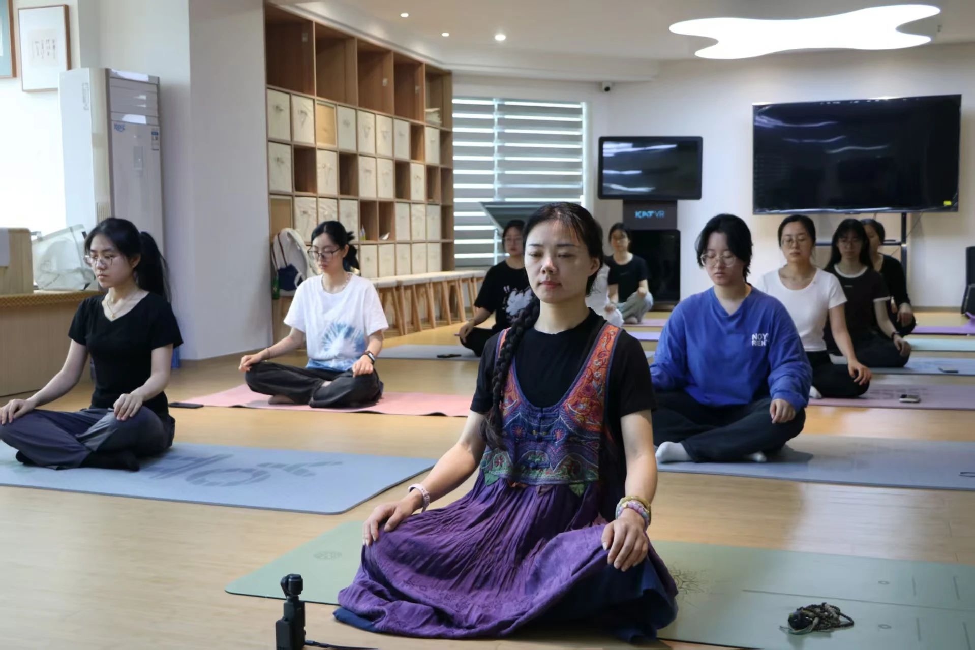 为了帮助同学们减轻压力,找回内心的平静与和谐,近日,公司心理辅导站组织同学们在商务中心MIX空间开展了“静享当下 压力清零”冥想瑜伽舒缓体验课程,带领十余位同学共同开启了一段身心疗愈之旅。