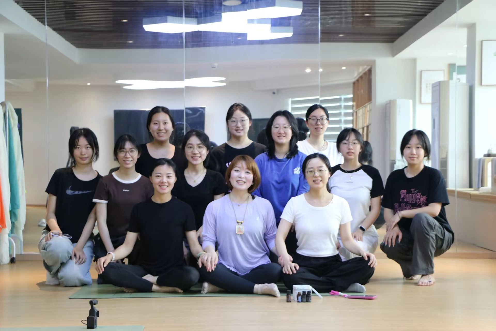 课程的最后,同学们以坐立半莲花或全莲花的姿态,在薄荷精油的淡淡香气中进行了呼吸冥想。在这份宁静与祥和之中,他们专注于当下,与内心进行了一场深层的对话,完成了自我疗愈的奇妙旅程。
