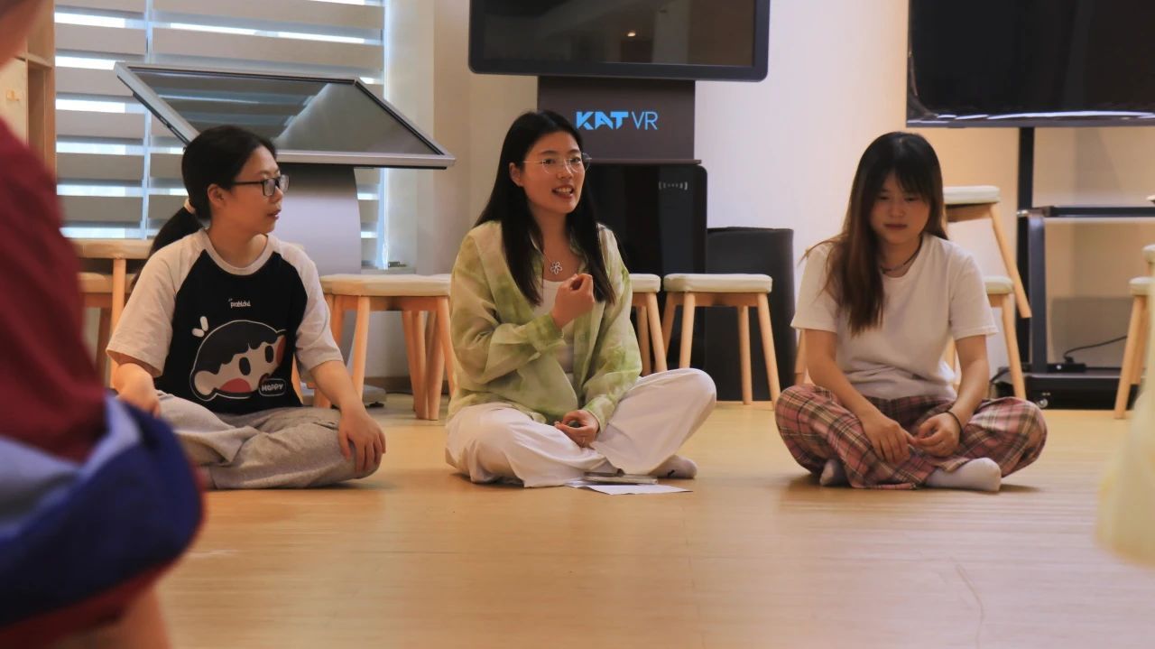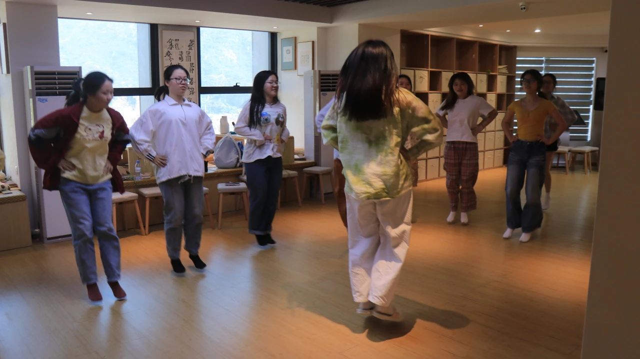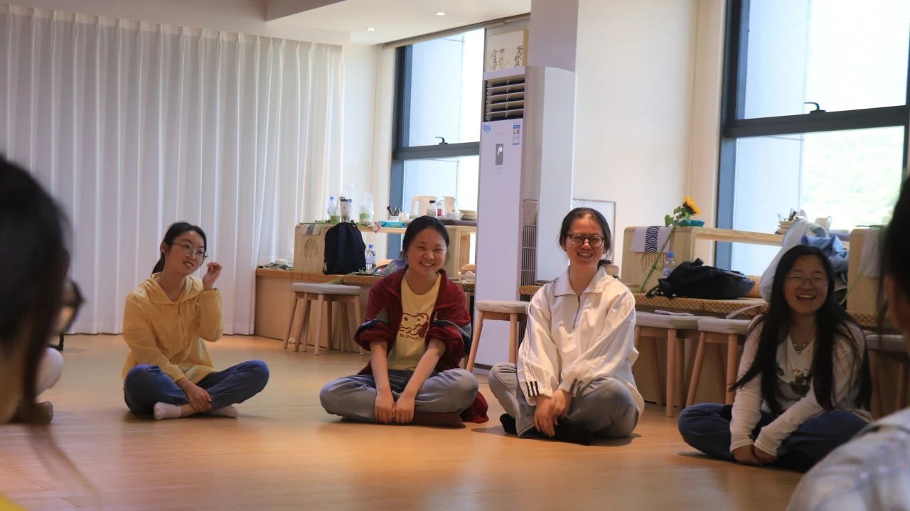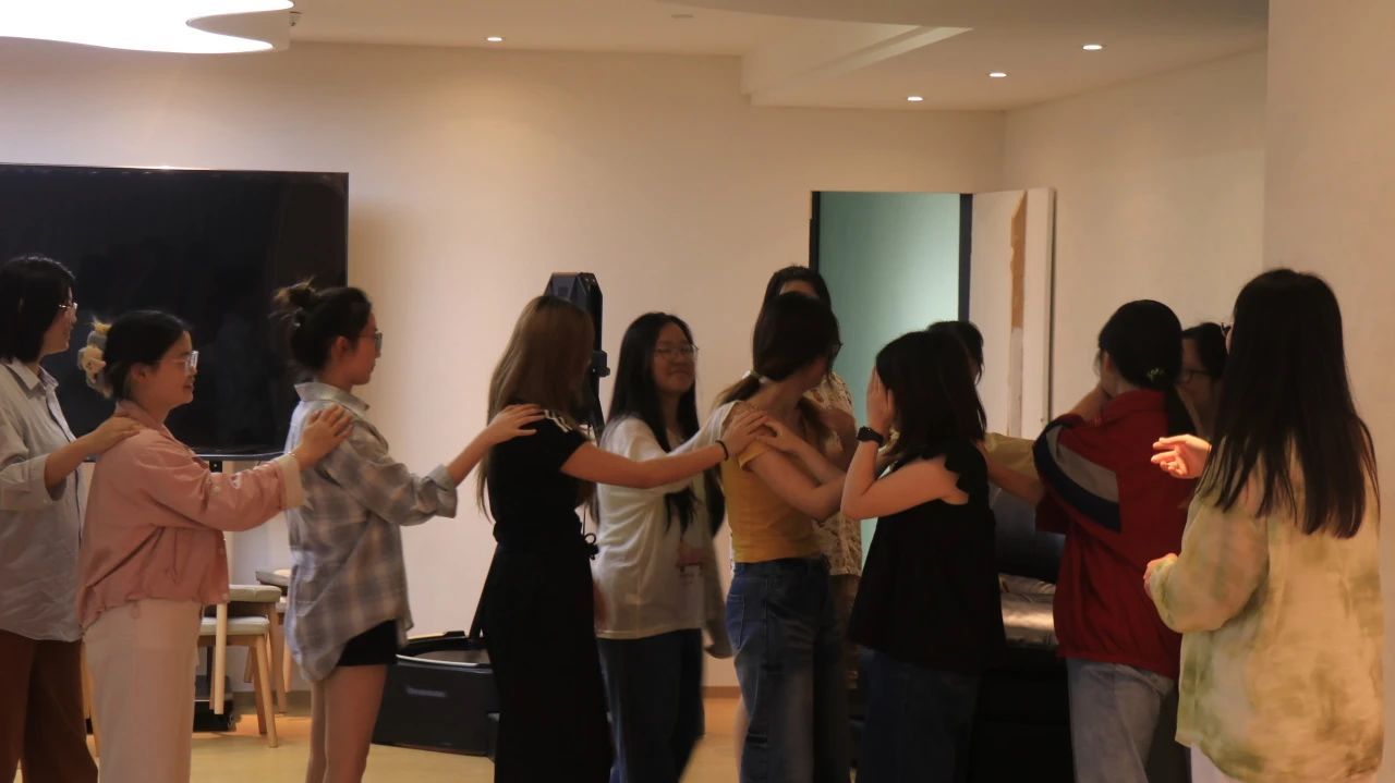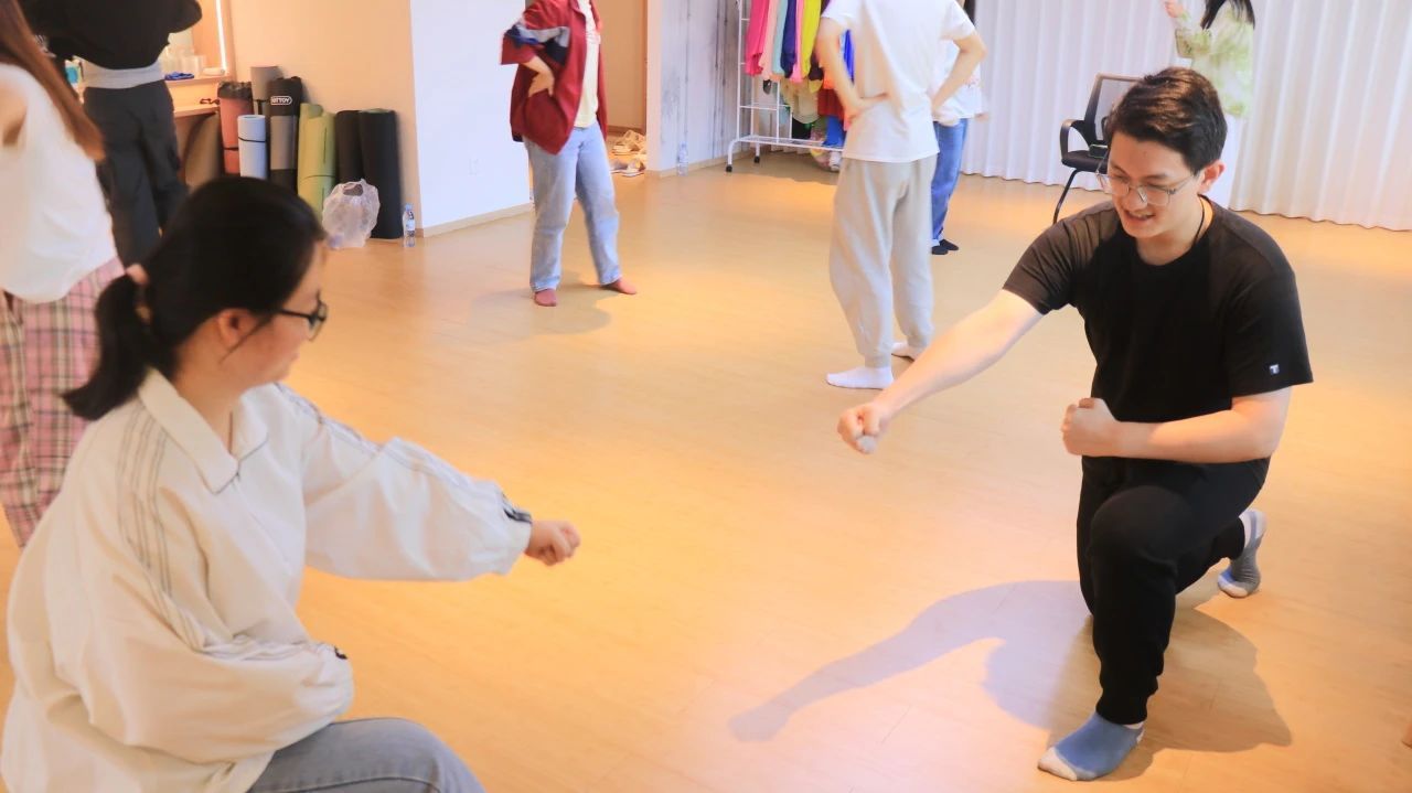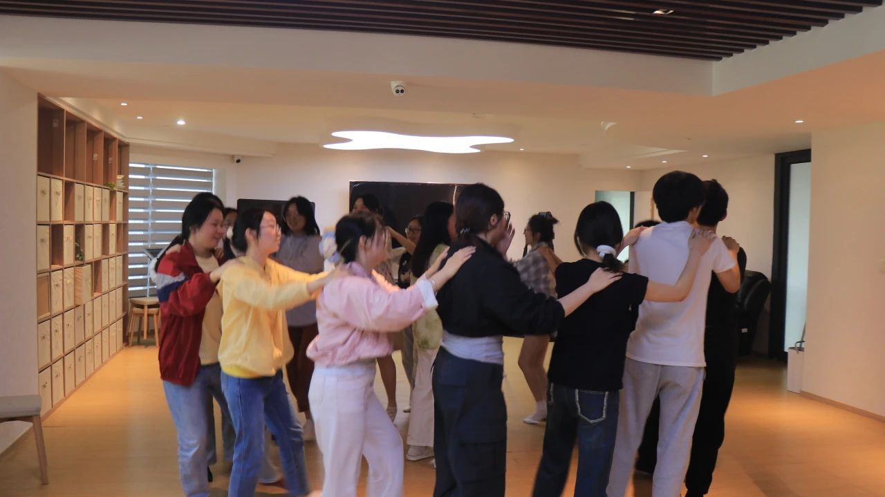 同学们移步MIX空间,围坐一圈,通过两轮递进式发言,进行了自我介绍,表达了自己对舞蹈疗愈的期待,随后的热身兔子舞更是点燃了现场气氛,让大家在欢声笑语中放松身心,迅速拉近了距离。